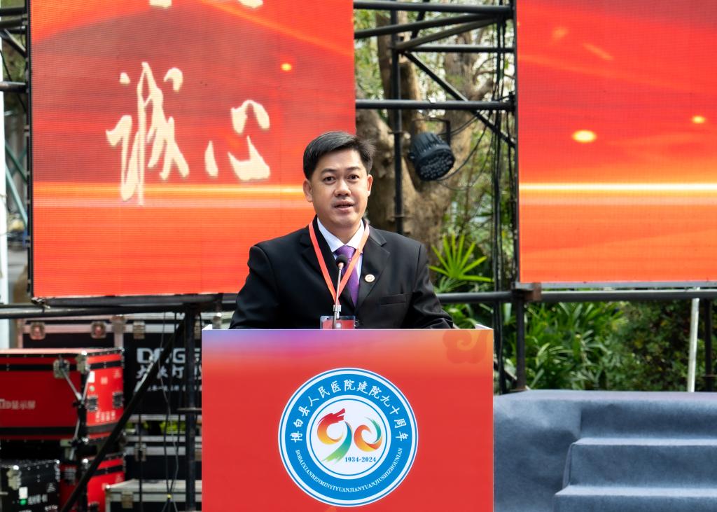 黄龙坚在活动上致辞,向博白县人民医院90年发展所取得的辉煌成就表示祝贺。他表示,校院硕士研究生联合培养基地的建设对于双方合作具有里程碑意义。双方要充分发挥各自优势,创新人才培养模式,深入开展同等学力研究生联合培养工作,为提升医务工作者的学历水平和综合能力搭建优质教育平台,扎实开展同等学力研究生教育,为博白县人民医院培养出一大批优秀的硕士研究生,助力基层医疗服务水平迈向新台阶。