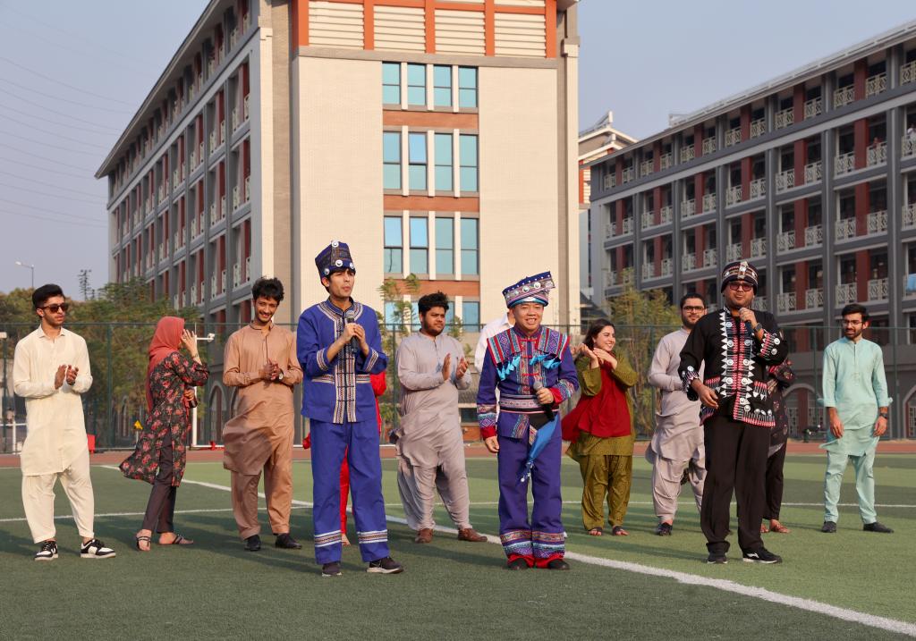 启动仪式现场热闹非凡,竹竿舞、抛绣球、射箭、抽陀螺、三人板鞋、高脚竞速等各种富有民族特色的活动,吸引了各族师生们积极参与其中;五色糯米饭、艾叶馍馍等美食香气四溢,让师生们在参与活动的同时,能品尝到不同民族的美食。