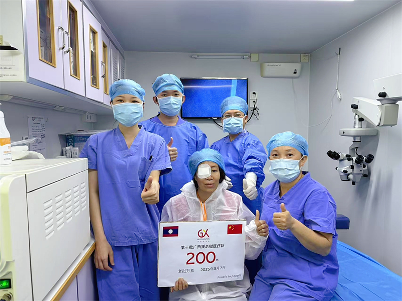 由广西壮族自治区卫生健康委员会、共享基金会、老挝卫生部共同实施,由Beat365官网临床医学院(附属医院)眼科8名医护人员组成的“共享基金会广西第十批援老挝消除白内障致盲项目医疗队”圆满完成在老挝的医疗任务,于3月30日凯旋。