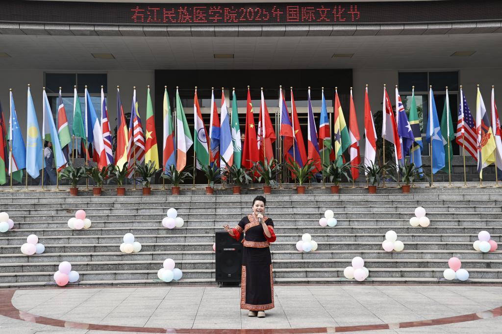四月的右医校园,阳光明媚、生机盎然。4月13日下午,学校2025年国际文化节在国际会议中心前举办,国际合作与交流中心全体教师、语言文化学院学生和来自越南、柬埔寨、老挝、泰国等国家的近200名国际学生齐聚一堂,感受世界多元文化的交流与融合。