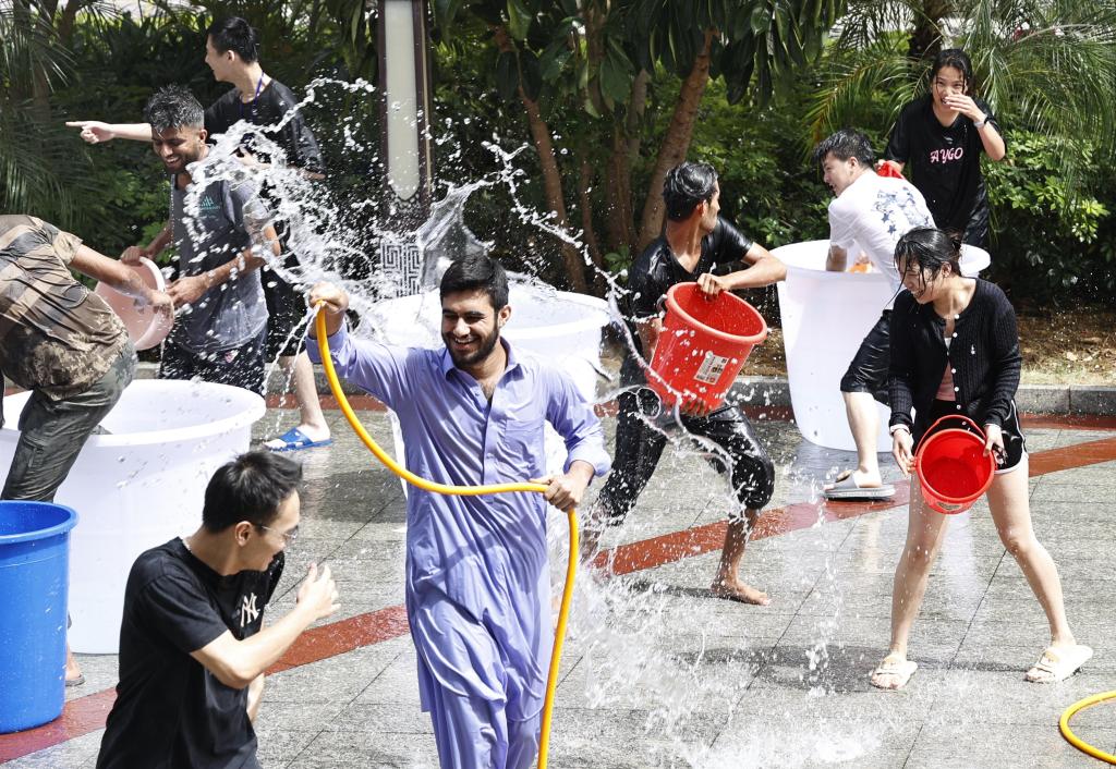 泼水祈福现场欢声笑语。