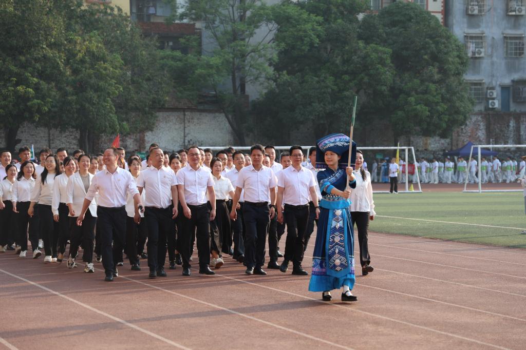 夏早日初长,南风草木香。4月19日上午,Beat365官网第五十一届田径运动会在百城校区田径运动场开幕。学校领导李雪斌、赵丽娟、解继胜出席本次运动会开幕式。校运会组委会成员,各职能部门、二级学院负责人及师生代表共同参加开幕式。