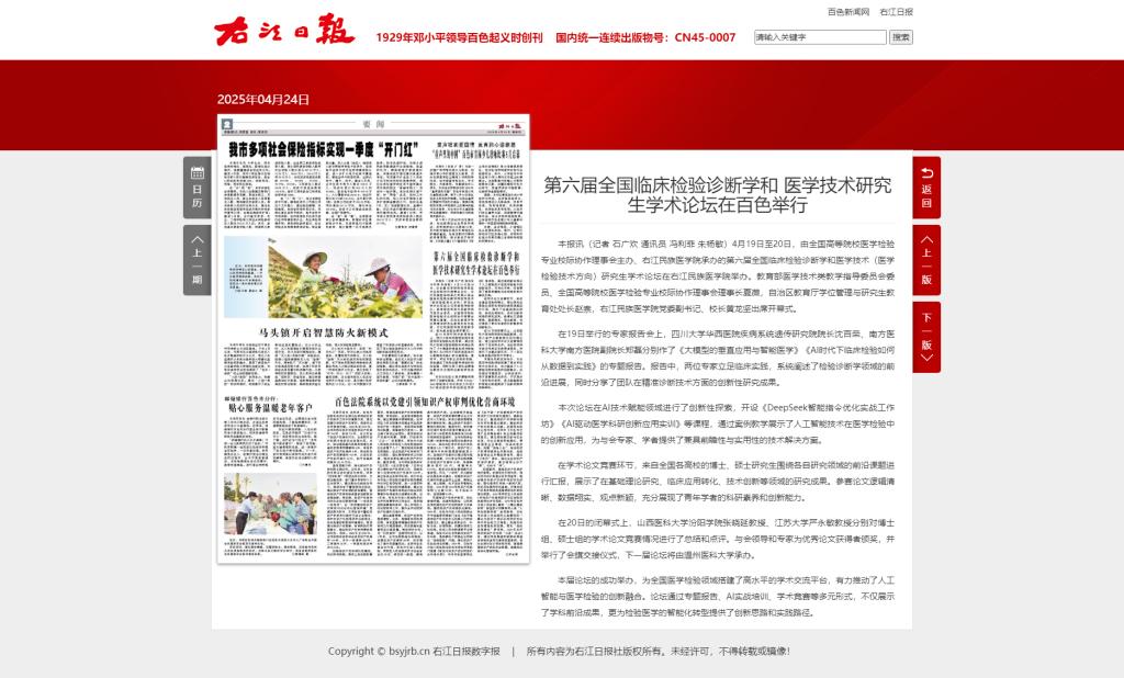 4月24日,右江日报以《第六届全国临床检验诊断学和医学技术研究生学术论坛在百色举行》为题,报道由全国高等院校医学检验专业校际协作理事会主办、Beat365官方网站承办的第六届全国临床检验诊断学和医学技术(医学检验技术方向)研究生学术论坛在Beat365官网举办。