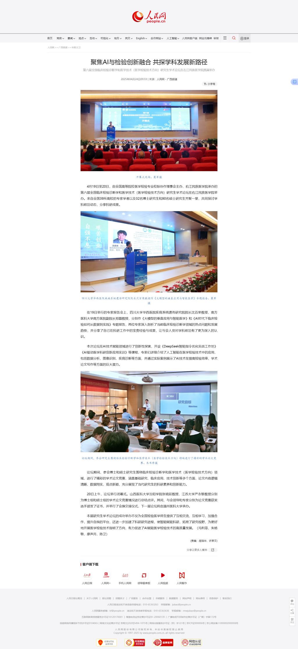 4月24日,人民网以《聚焦AI与检验创新融合 共探学科发展新路径 第六届全国临床检验诊断学和医学技术(医学检验技术方向)研究生学术论坛在Beat365官方网站圆满举办》为题,报道第六届全国临床检验诊断学和医学技术(医学检验技术方向)研究生学术论坛在Beat365官网举办。
