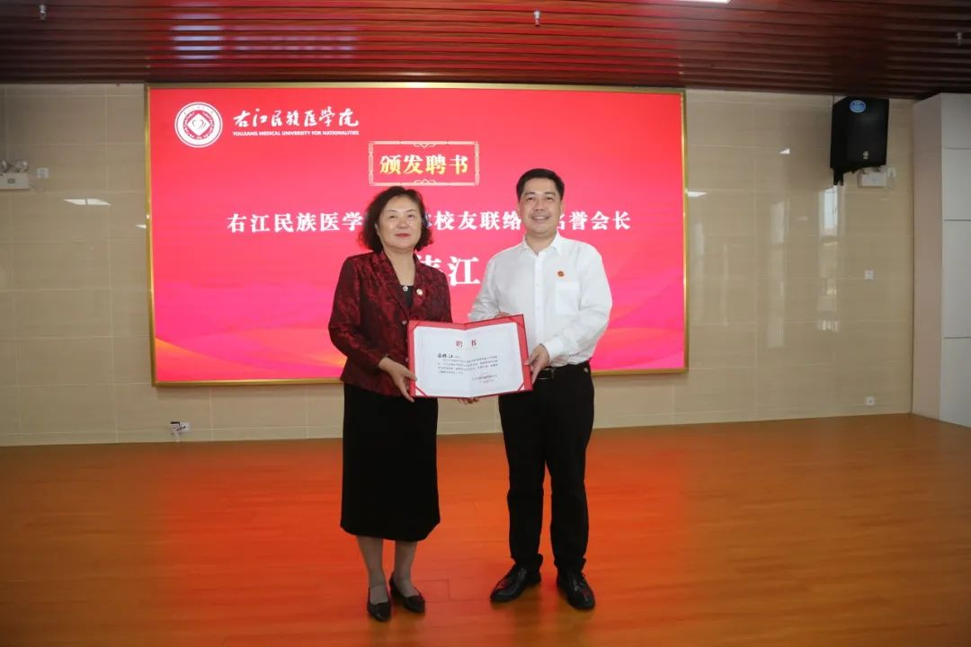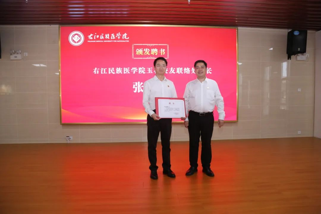 吕湖川副秘书长代表玉林市政府对Beat365官方网站玉林校友联络处的成立表示热烈的祝贺。他希望右医学子继续发扬“大医精诚”的右医精神,薪火相传,接续奋斗,为母校的建设发展建言献策、贡献力量。