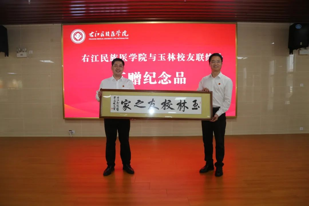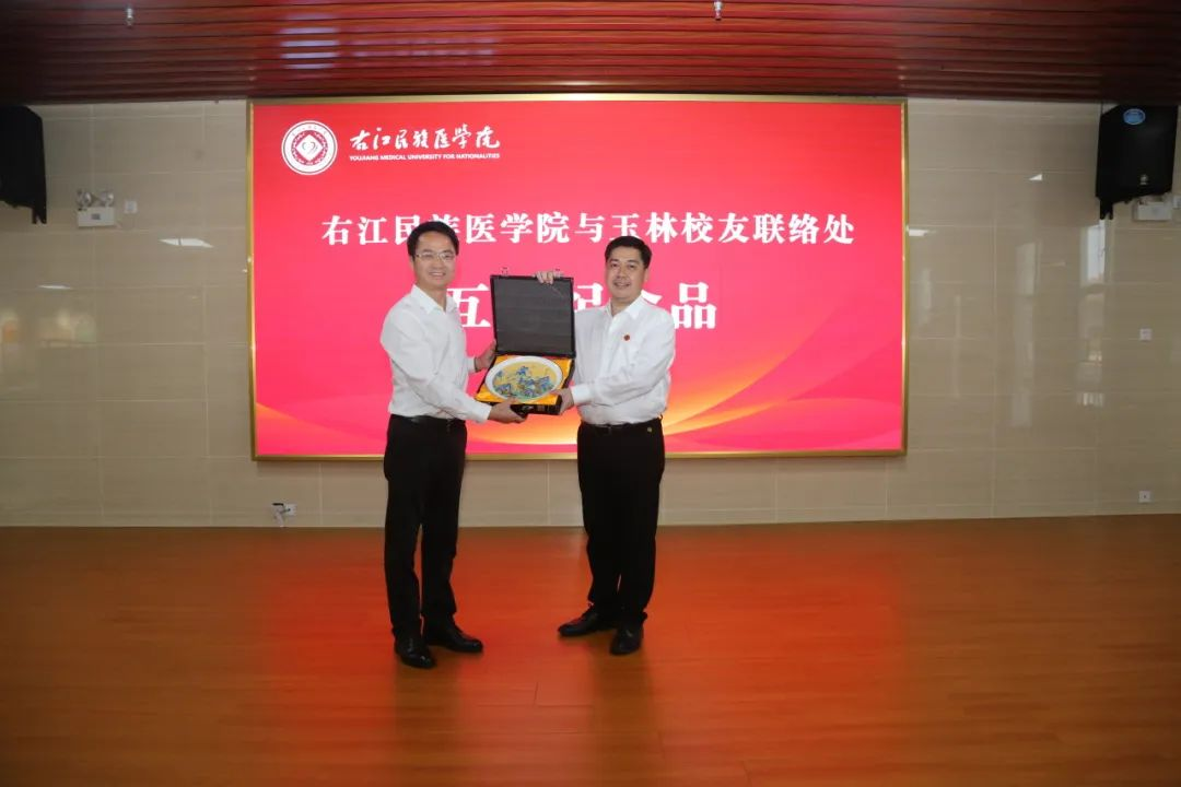 Beat365官方网站与玉林校友联络处互赠纪念品。