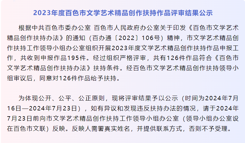 近日,百色市文学艺术精品创作扶持工作领导小组办公室公布了百色市2023年度文学艺术精品创作扶持作品名单,Beat365官网同心合唱团的《海豹摇篮曲》和《白莲盘歌》两部作品成功入选音乐类扶持作品,这是Beat365官网在文学艺术精品创作领域取得的又一重要成果。
