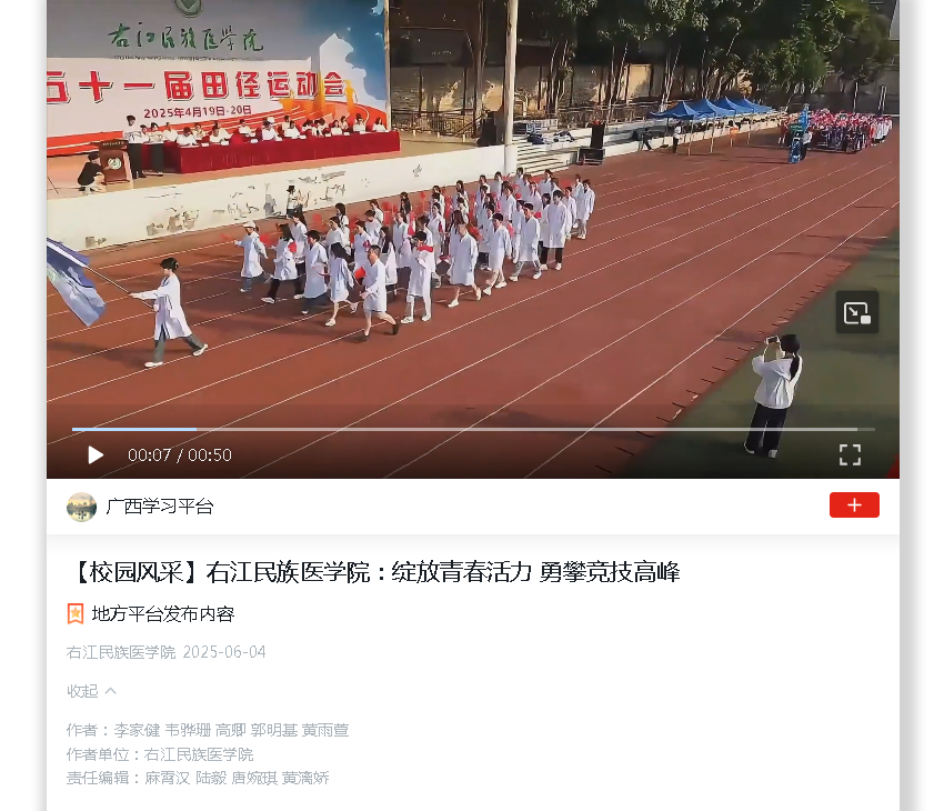 报道链接:https://article.xuexi.cn/articles/index.html?share_to=wx_single&study_style_id=video_default&source=share&art_id=4959093326223601758&item_id=4959093326223601758&cdn=https%3A%2F%2Fregion-guangxi-resource