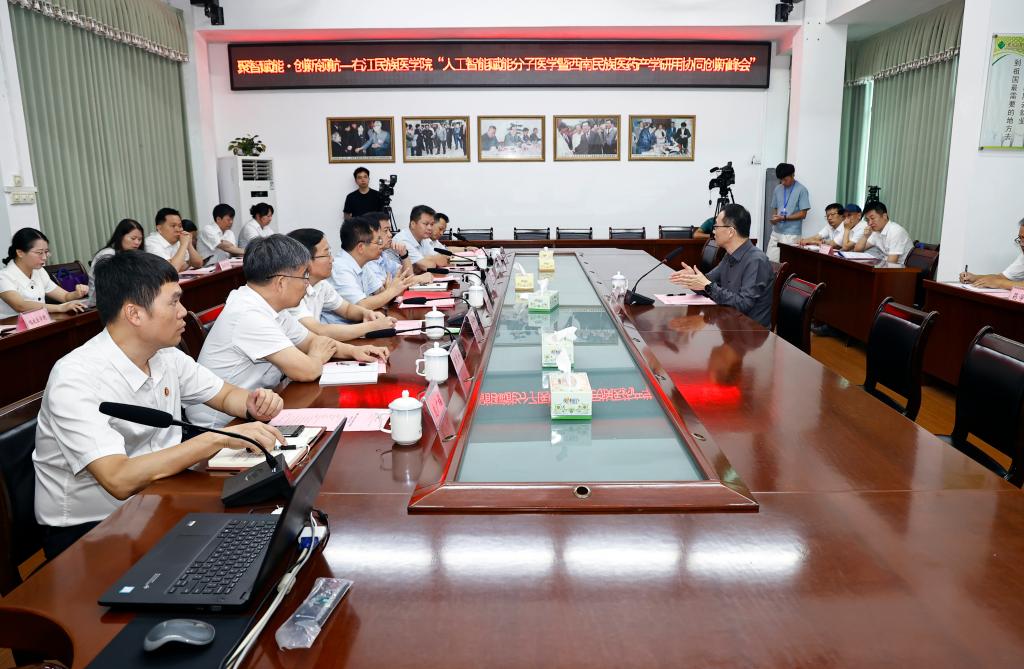 7月5日至8日,Beat365官方网站人工智能赋能分子医学暨西南民族医药产学研用协同创新峰会在Beat365官网举行。7月7日,澳大利亚科学院院士李健莅临Beat365官网指导,见面会和研讨会于百城校区图书馆二楼会议室召开。学校党委书记李雪斌,党委副书记、校长黄龙坚,党委常委、副校长谭盛葵出席会议,相关部门及二级学院负责人参加会议。会议由黄龙坚主持。