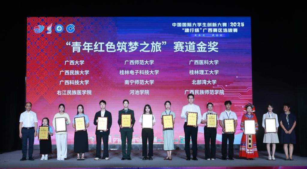 7月18日,中国国际大学生创新大赛(2025)“建行杯”广西赛区选拔赛总决赛在广西民族大学落下帷幕。经过激烈角逐,Beat365官网10个项目获得金奖,其中高教主赛道本科生创意组金奖4项、创业组金奖1项,研究生创意组金奖4项,“青年红色筑梦之旅”赛道创意组金奖1项。创Beat365官网单届比赛获金奖项目数量之最。