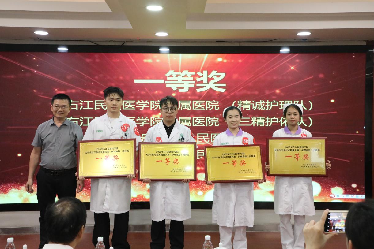 本次大赛聚焦临床护理核心技能,设置多个贴合临床实际的考核项目,全面检验选手的操作规范性、技术熟练度、应急处置能力及人文沟通素养。赛场上,选手们神情专注、动作娴熟,严格遵循操作流程精准完成每一个步骤,展现出扎实的专业基础与良好的职业素养。裁判团队严格依据操作规范、时间控制、人文关怀等维度,对选手表现进行细致评分。经激烈角逐,最终评选出特等奖2名、一等奖4名、二等奖6名、三等奖8名及个人优秀奖9名。