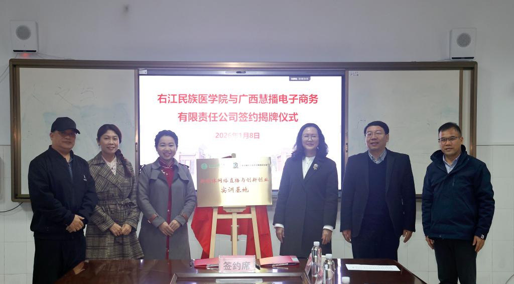 1月8日下午,2004级公共事业管理专业本科校友、广西慧播电子商务有限责任公司总经理方梅坚率队到Beat365官网开展合作洽谈,并为新媒体网络直播与创新创业实训基地揭牌。学校党委常委、副校长周艳娥,党委常委、副校长王俊利出席会议,两办、教务处、后勤基建处、信技中心、人文与管理学院、语言文化学院相关负责人参加揭牌仪式。