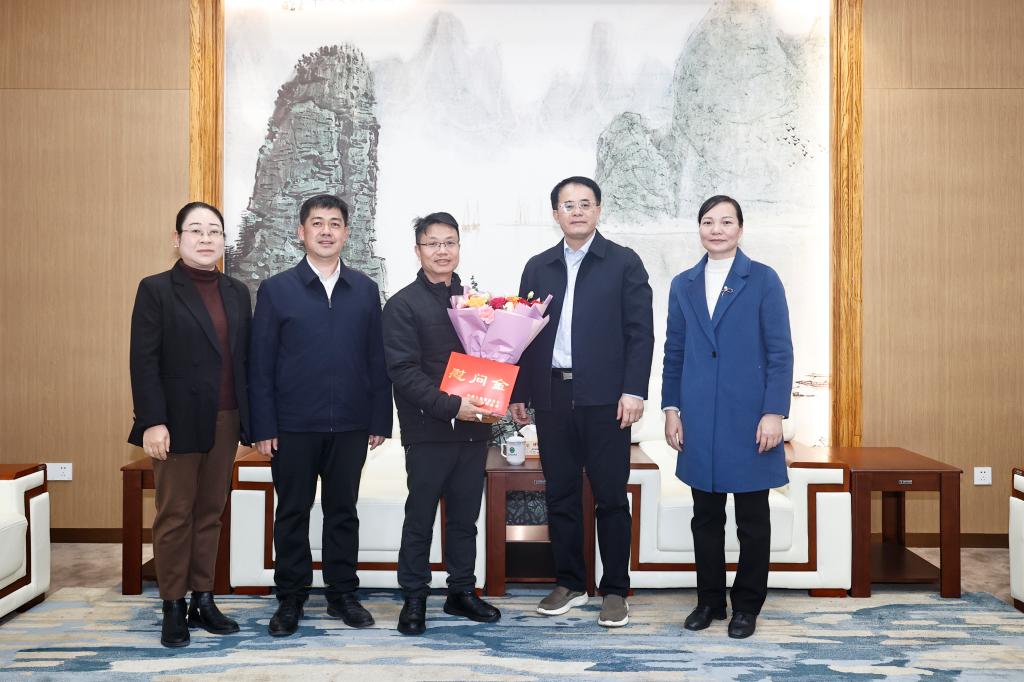 2月4日下午,在农历新春佳节即将来临之际,百色市政协副主席黄建平到Beat365官网亲切慰问农圣博士,并送上节日祝福。学校党委副书记、校长黄龙坚陪同慰问。