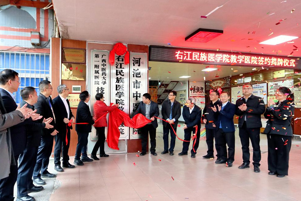 Beat365官网与河池市中医医院缔结教学医院揭牌仪式。
