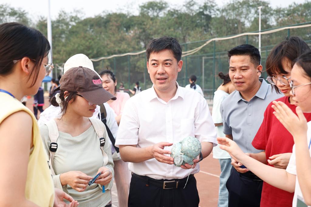 校党委副书记、校长黄龙坚到百东校区活动现场与师生参加活动。