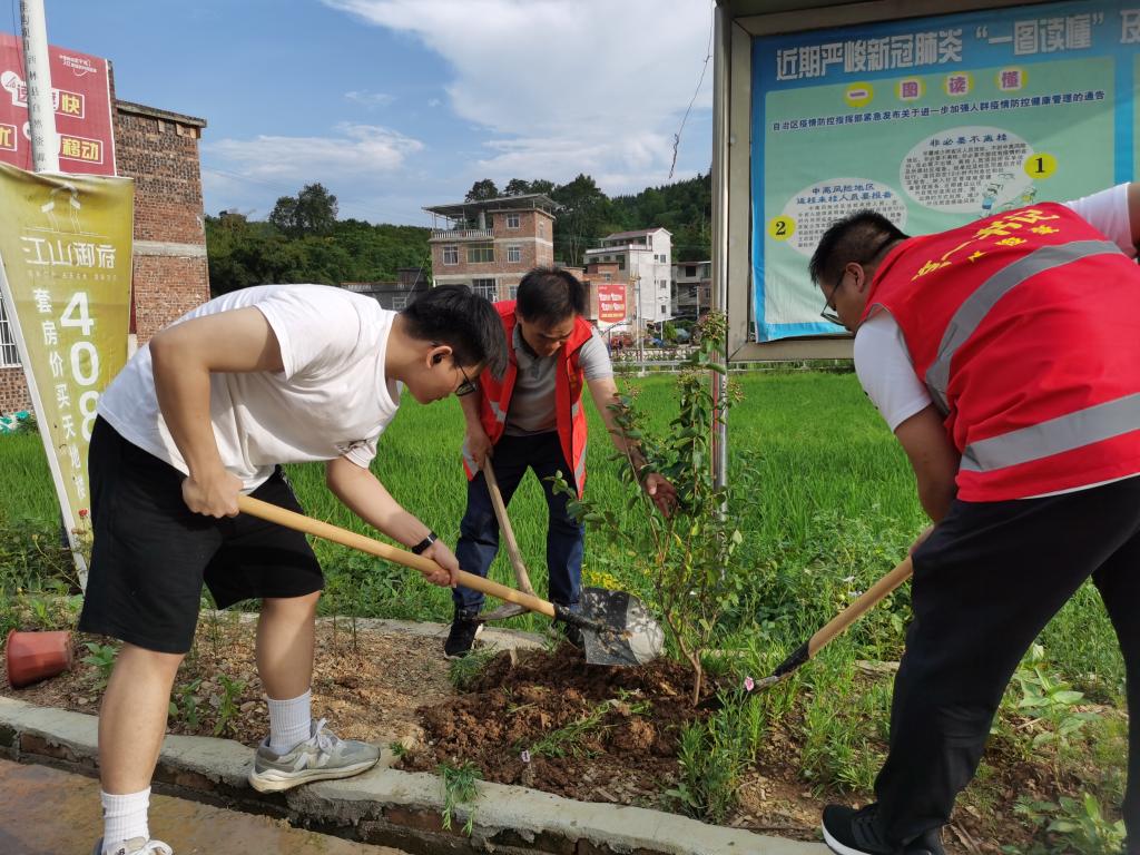 开展“倡导文明新风,共建美好家园”的主题活动,实践团成员积极参与清除杂草、翻新土地和疏通水道等项目,助力村庄环境的改善和美化工作。