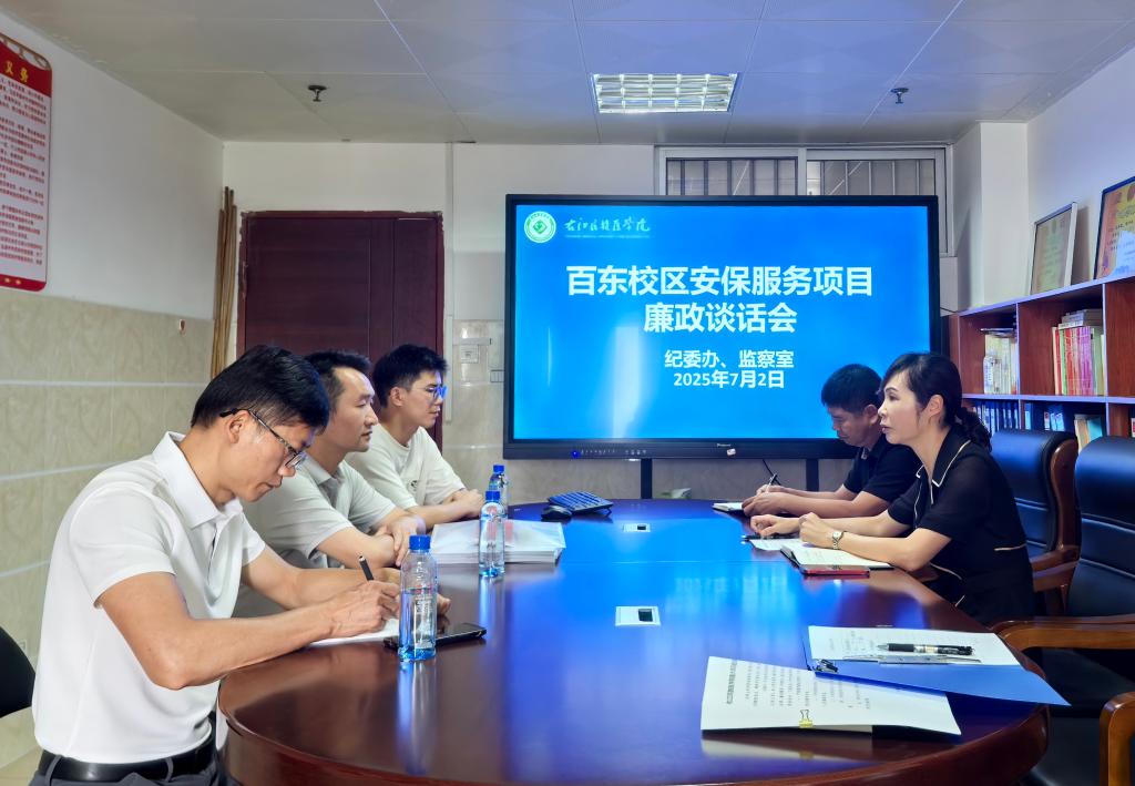 7月2日,百东校区1、2期安保服务中标方广西百色市保安服务有限责任公司正式与Beat365官网签订服务合同。在签订服务合同的同时,在7栋11楼学校纪委会议室,学校纪委召集中标方代表、学校保卫处领导开展廉政谈话,并签订廉洁承诺书,督促项目方与学校职能部门强化纪法观念,时刻紧绷廉洁自律之弦。