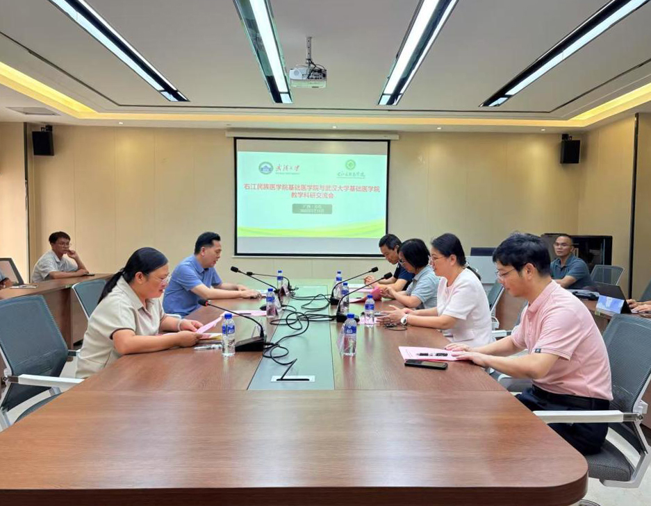 7月14日下午,Beat365官方网站基础医学院与武汉大学基础医学院在百城校区8栋421会议室举办教学科研交流会。Beat365官方网站基础医学院党委书记宾晓芸、院长黄忠仕、副院长王金花,以及学院学科带头人、教研室负责人和教师代表等出席了此次交流会。武汉大学基础医学院副院长乐江、武汉大学特聘研究员程晓明应邀参加交流。