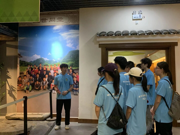 同心溯源,文化解码。实践团抵达巴马瑶族自治县的第一站——长寿博物馆,成员们走进博物馆,通过参观博物馆的五个展厅,了解到长寿老人们大多保持着规律的农耕生活,每天勤耕不怠,印证了巴马“劳动养身,平和养心”的长寿之道。实践团借助博物馆丰厚的文化底蕴优势,深入挖掘团队调研方向,探寻文化脉络。队员赵同学化身主讲人,结合观学收获向成员们进行分享与交流探讨,进一步深化观学意义,提升理论内涵。