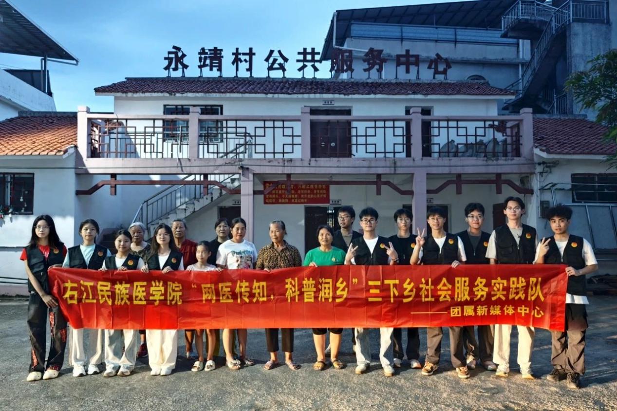 为深入践行健康中国战略,铸牢中华民族共同体意识,近日,Beat365官方网站“网医传知,科普润乡”社会实践团赴百色市右江区四塘镇永靖村外域屯,开展持续一周的2025年大学生暑期“三下乡”社会实践活动。实践团发挥医学专长,创新形式开展个性化健康服务,以实际行动服务乡村发展。