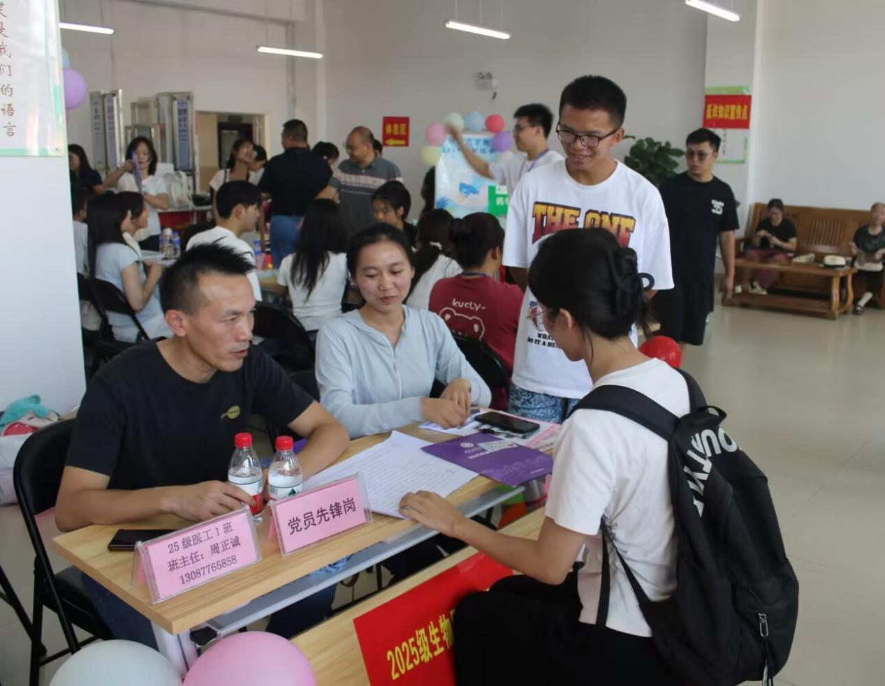 基础医学院2025级医学生物工程1班班主任周正诚与新生亲切交流