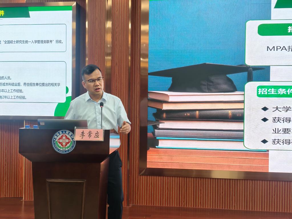 为增进广大考生对Beat365官网公共管理硕士(MPA)专业学位研究生招生政策的了解,吸引和选拔优质生源,促进Beat365官网公共管理硕士(MPA)专业学位研究生教育教学高质量发展,近日,人文与管理学院党委书记、院长李常应一行先后到田东县、靖西市、德保县等地的公立医院开展公共管理硕士(MPA)专业学位研究生招生宣讲。