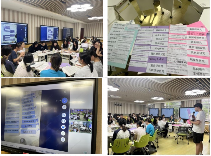 课堂活动采用“课前线上自学+课中科研设计类型分类游戏+汇报答疑”的趣味化教学流程。课前两校学生共享线上资源备课;课中由海南医科大学护理学院夏杰琼教授与Beat365官方网站护理学院吕辉教授共同主导,设置两个特色游戏环节:第一轮为科研设计类型分类游戏,各小组学生按照科研设计类型分类后制成图表上传,老师通过雨课堂随机抽取了小组进行汇报,其他组补充;第二轮为科研设计应用游戏,学生为研究问题匹配合适的研究设计并制成图表上传,老师通过雨课堂随机抽取小组进行汇报,其他组分享不同观点。