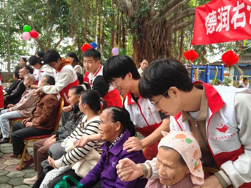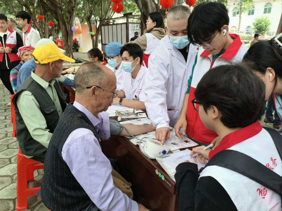金秋送爽,又逢重阳。2024年重阳节前夕,习近平总书记给人民行动老年志愿者代表回信,亲切勉励广大老年朋友在安享晚年的同时积极老有所为,为推进中国式现代化贡献“银发力量”,并向全国老年人致以诚挚问候。为深入践行总书记嘱托,传承重阳节“敬老、爱老、孝老”的千年文化内涵,10月25日上午,基础医学院党委联合四塘镇人民政府,在侨吉社区同心广场共同举办了以“重阳德孝情,学子暖民心”为主题的文明实践活动。致力于将传统节日氛围与民生服务、文化传承有机结合,为镇内老人送去温暖与关怀。