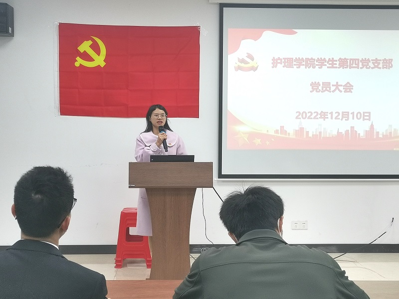 为进一步加强基层党组织建设,落实党支部发展党员工作计划,护理学院学生第四党支部于2022年12月10日晚在护理学院8-211会议室顺利召开支部党员大会,讨论接收韦艾岑等7名同志为中共预备党员相关事宜。大会由王荣贵同志主持,护理学院学生第四党支部全体党员、预备党员参会。