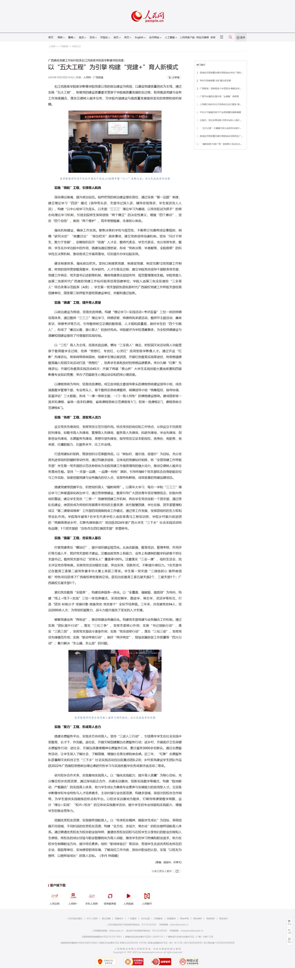 【媒体看右医】人民网:广西高校党建工作标杆院系Beat365官方网站医学影像学院党委:以“五大工程”为引擎 构建“党建+”育人新模式