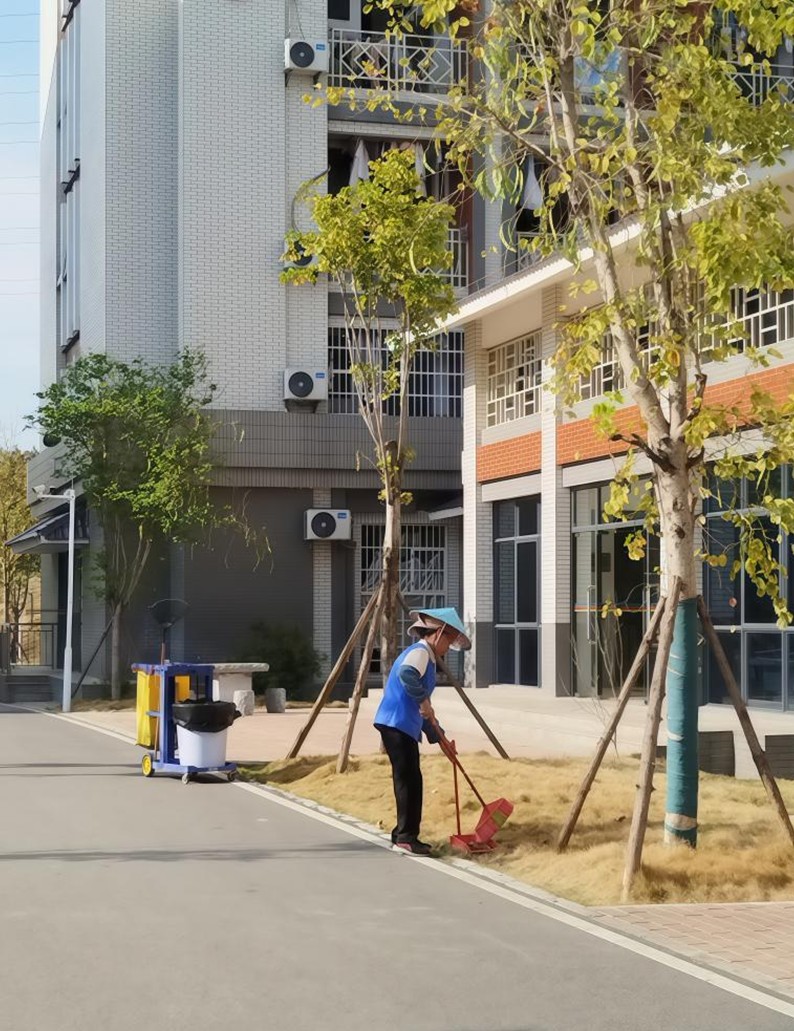 校园一隅:保洁人员清扫瞬间